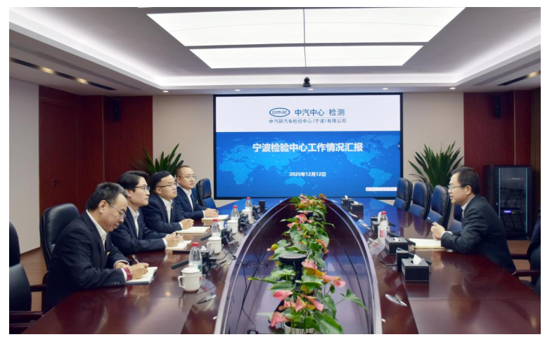 2025年12月12日,中汽中心黨委委員、副總經(jīng)理李洧到寧波檢驗(yàn)中心調(diào)研指導(dǎo)工作。