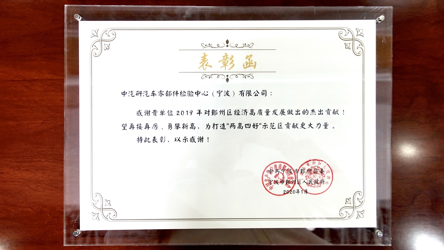 此上殊榮,既是鄞州區委區政府對我司工作成果的肯定,也是對公司未來經營工作的鼓勵。2020年,公司將以此為新的起點,為推動鄞州經濟高質量發展貢獻力量!