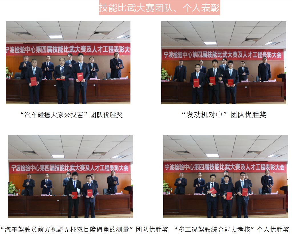 在2020屆人才工程評審中,經(jīng)寧波檢驗(yàn)中心人才工程領(lǐng)導(dǎo)小組考評,聘任了8位技術(shù)專家、5位工匠,其中李兵、吳云兵為汽車主動安全性能試驗(yàn)技術(shù)專家;甄凱為汽車熱管理技術(shù)專家;丁旭為電驅(qū)動技術(shù)專家;杜志豪為碰撞試驗(yàn)技術(shù)專家;劉亞林為化學(xué)領(lǐng)域整車及部件空氣質(zhì)量測試類技術(shù)專家;梅一丹為零部件領(lǐng)域車身及附件測試技術(shù)類專家;王科為化學(xué)領(lǐng)域材料化學(xué)性能類專家;趙建剛為碰撞試驗(yàn)操作工匠;陳強(qiáng)為駕駛技能工匠;龔敏馳為假人拆裝與標(biāo)定工匠;楊斌斌為排放試驗(yàn)工匠;馬建國為自制工裝工匠。同時2019屆的專家、工匠通過中期評審,2018屆的專家、工匠通過終期評審,任期結(jié)束。
