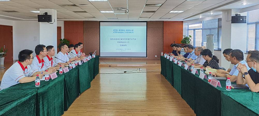 8月19日,浙江省生態環境廳大氣處處長李曉偉一行到中汽中心檢測認證事業部寧波檢驗中心調研,寧波檢驗中心副總經理胥峰等相關領導陪同。