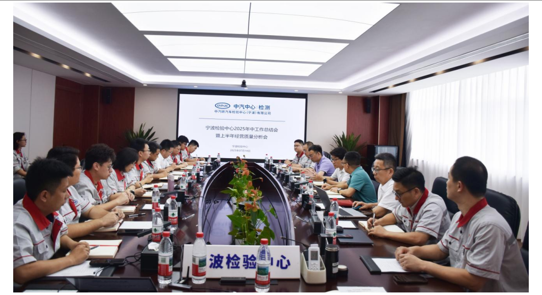 為傳達落實中汽中心2025年年中經營工作會會議精神,全面剖析上半年經營質量,科學部署下半年經營工作任務,2025年7月14日,寧波檢驗中心召開2025年中工作總結會暨上半年經營質量分析會。寧波檢驗中心領導班子、經理級領導人員、財務主管及市場經理參加會議。