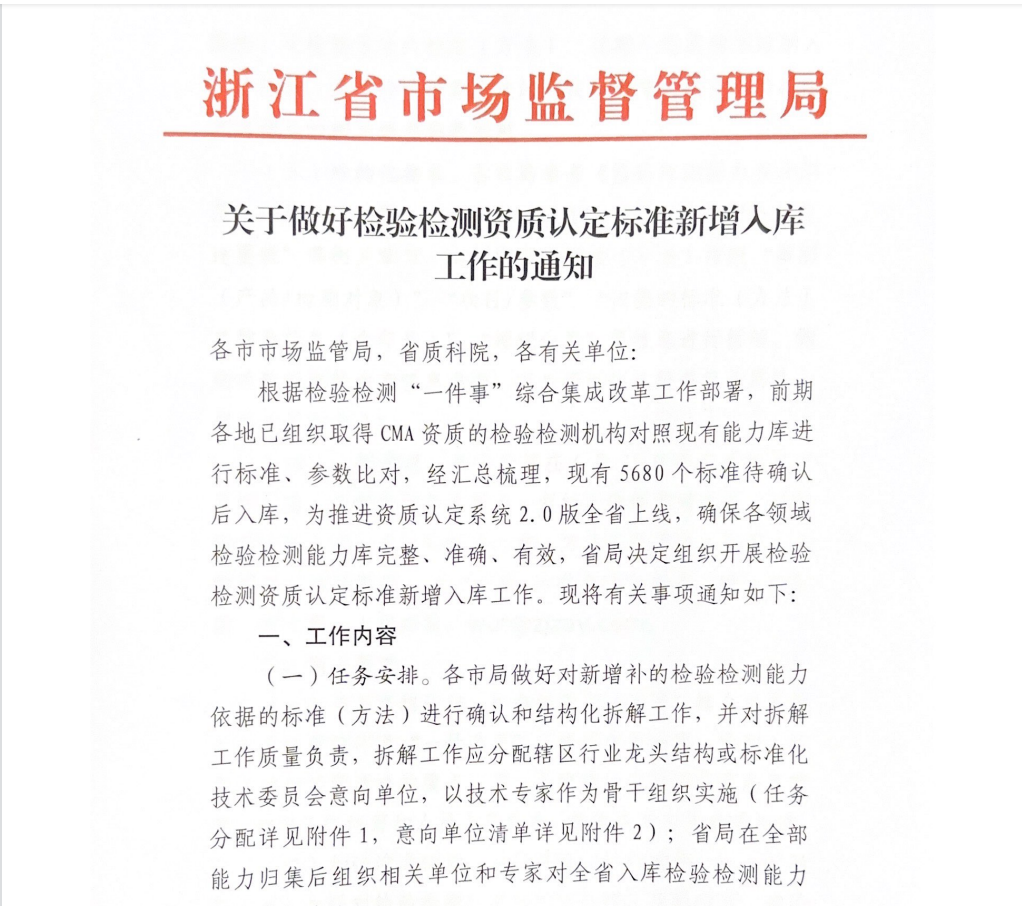 寧波檢驗中心積極承擔浙江省檢驗檢測資質認定標準入庫工作